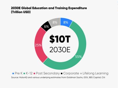 The global education market is set to reach at least $10T by 2030 as population growth in developing markets fuels a massive expansion and technology drives unprecedented re-skilling and up-skilling in developed economies. The next decade will see an additional 350 million post secondary graduates and nearly 800 million more K12 graduates than today. Asia and Africa are the driving force behind the expansion. The world needs to add 1.5 million teachers per year on average, approaching 100 million in total in order to keep pace with the unprecedented changes ahead in education around the world.